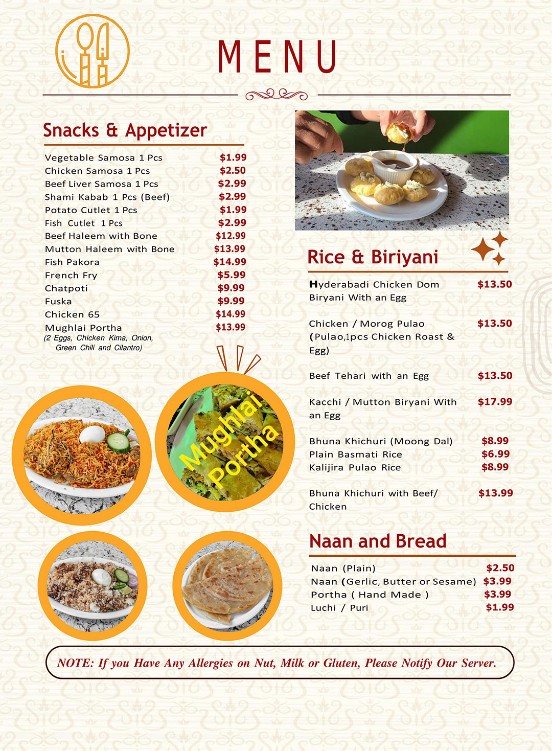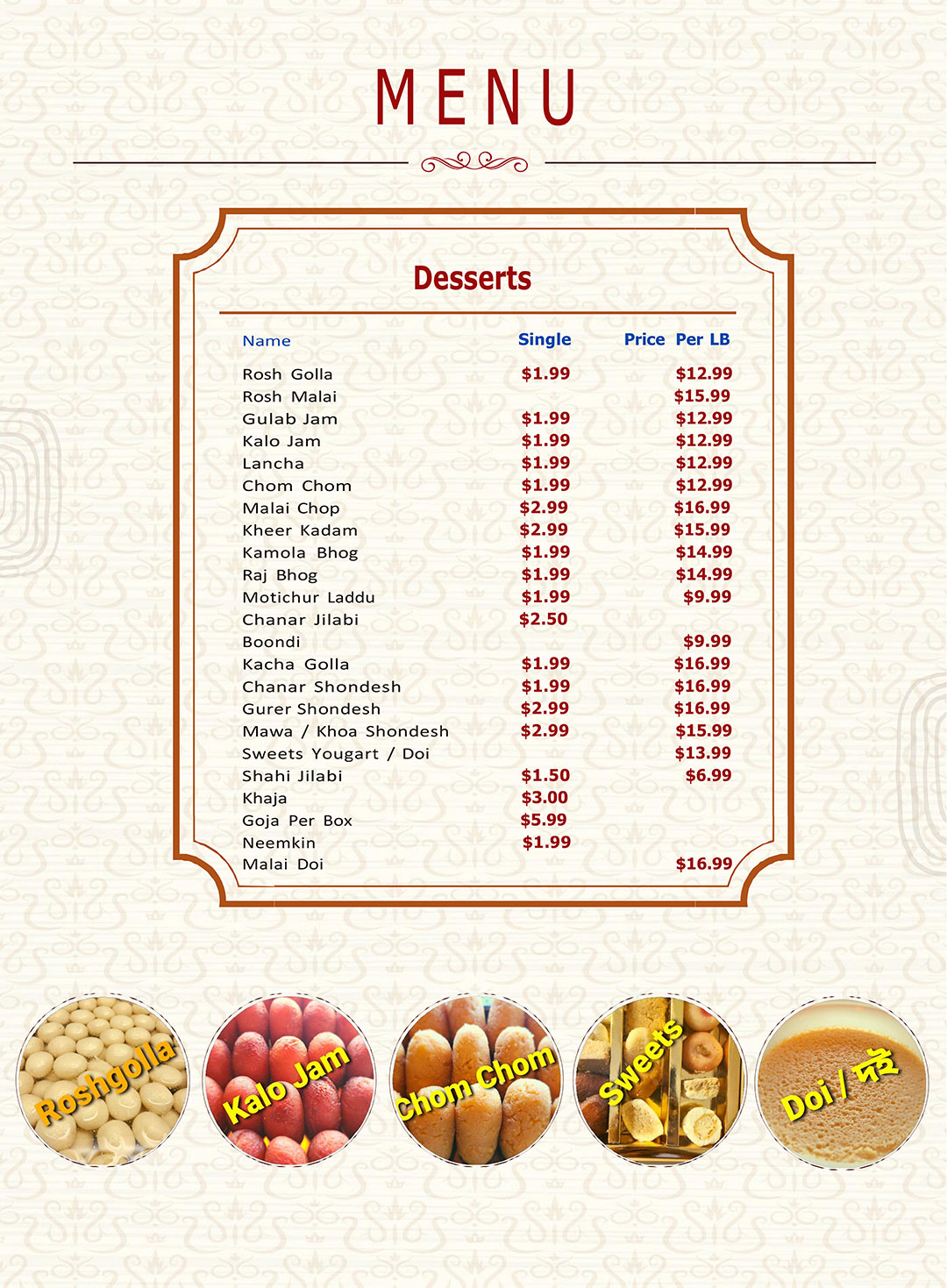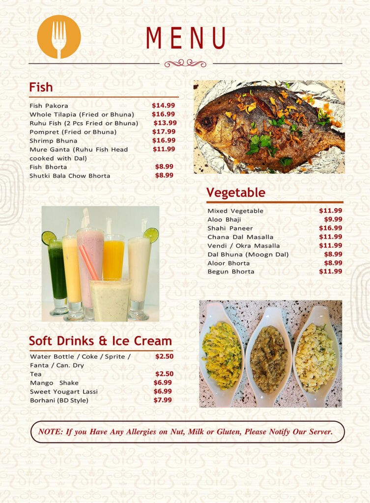 Our menu features a wide range of traditional Bangladeshi, Indian, Pakistani, and Middle Eastern dishes, offering something for every palate. We understand that many Bengali and other Desi individuals living far away from their homeland crave the authentic tastes of their culture, and that's